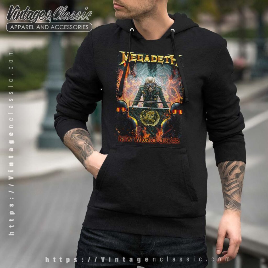 The Megadeth “New World Order” shirt is a highly sought-after piece for fans of the legendary thrash metal band. This iconic design, featuring the band’s name and the “New World Order” slogan, is a testament to their powerful and politically charged lyrics. It’s a statement piece for any hardcore fan, and a great way to show off your love for the band’s iconic sound and message.