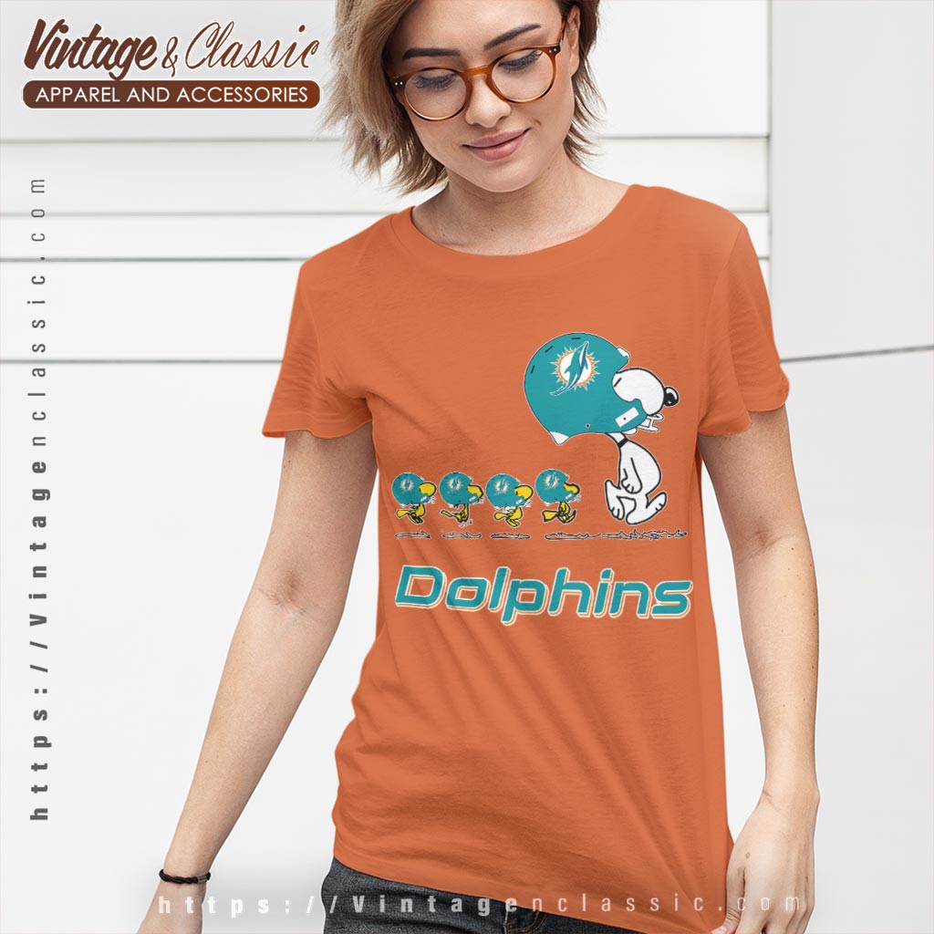 Related keywords: Miami Dolphins Snoopy shirt; Peanuts Dolphins apparel; Dolphins Woodstock tee; Snoopy football fan gear