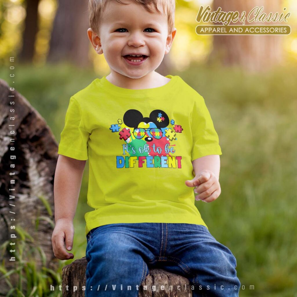 The “Mickey Ok To Be Different Autism Shirt” is a playful and supportive piece of apparel that celebrates autism awareness. It features a classic Mickey Mouse design with a message that encourages acceptance and understanding of neurodiversity.