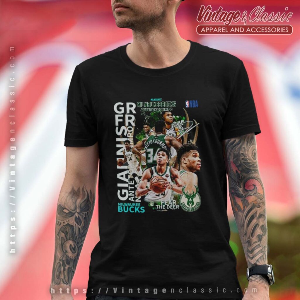 The Milwaukee Bucks Giannis Antetokounmpo shirt is a popular and sought-after item for fans of the team and basketball enthusiasts. It features the iconic Giannis Antetokounmpo, a star player for the Milwaukee Bucks, on the front. The shirt is a great way to show off your support for the team and celebrate his impressive skills and achievements.
