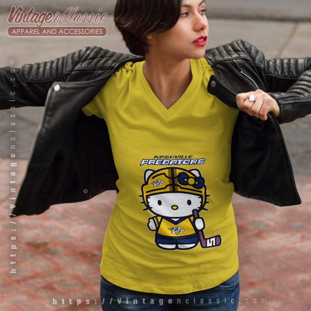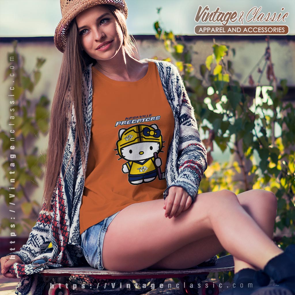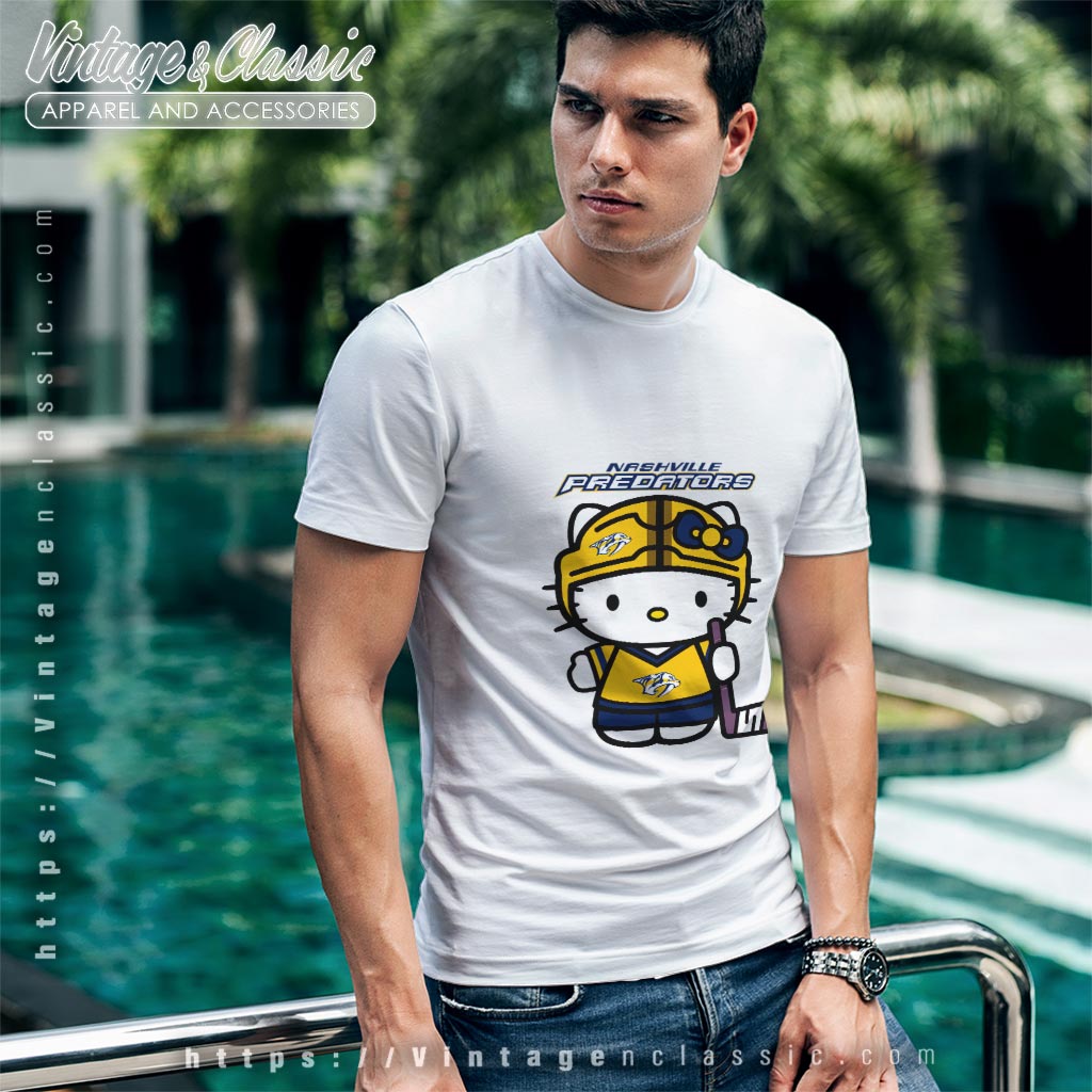 Related keywords: Nashville Predators merchandise; Hello Kitty sports apparel; NHL Hello Kitty shirt; Predators fan gear.