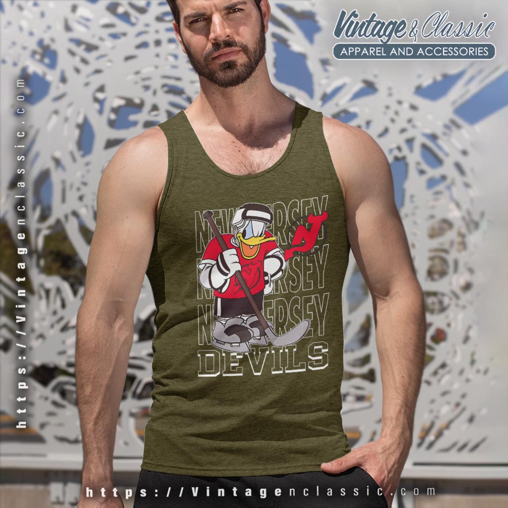 related keywords: Donald Duck New Jersey Devils hockey shirt, New Jersey Devils Donald Duck tee, Donald Duck NHL Devils shirt, cartoon hockey Devils fan shirt