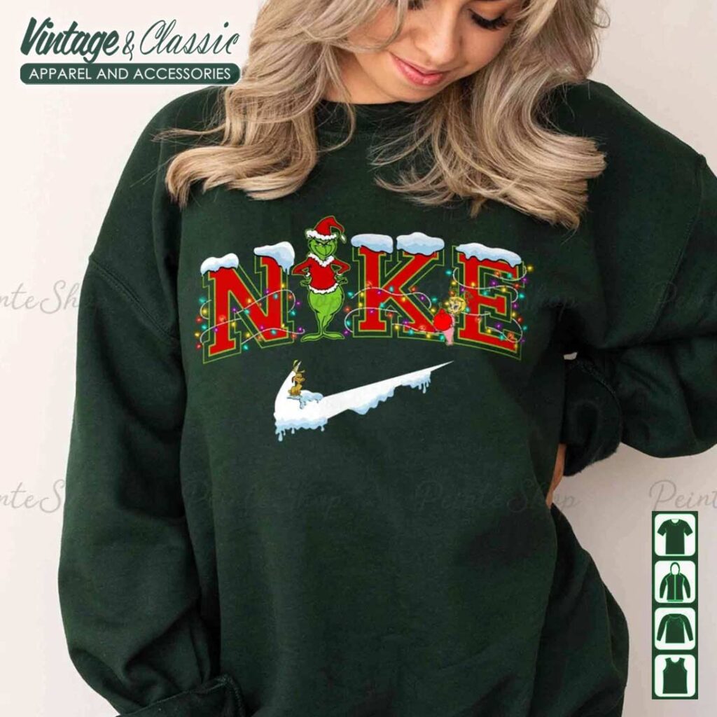 The Nike Santa Claus Grinch Christmas Shirt is a festive and fun way to celebrate the holiday season. This shirt features a classic design of Santa Claus and the Grinch, a beloved character from the popular Dr. Seuss story. It’s a great choice for anyone who loves Christmas and wants to show their festive spirit.