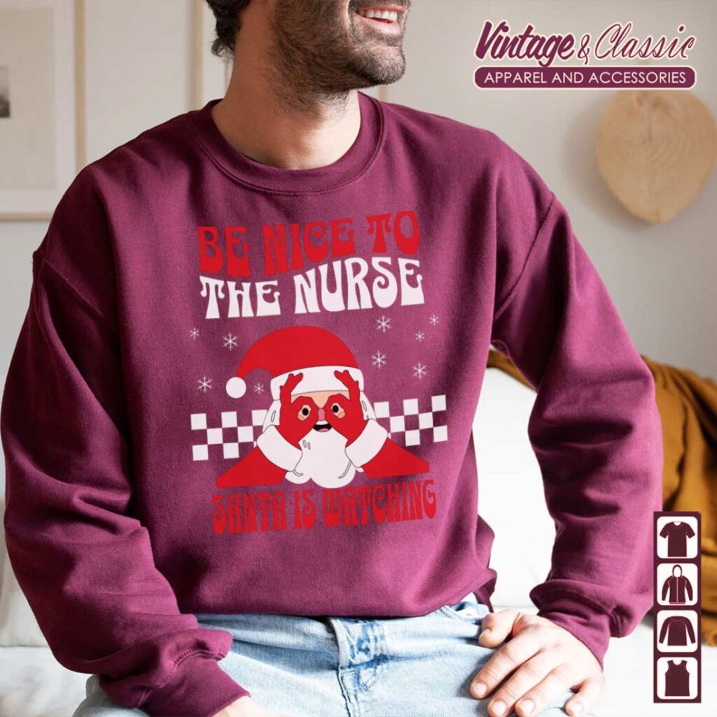This festive and fun shirt is a perfect way to show appreciation for the hard-working nurses this holiday season. The design features a playful message “Be Nice to the Nurse, Santa is Watching” with a festive Christmas theme. It’s a great way to spread holiday cheer and celebrate the dedication and care nurses provide.