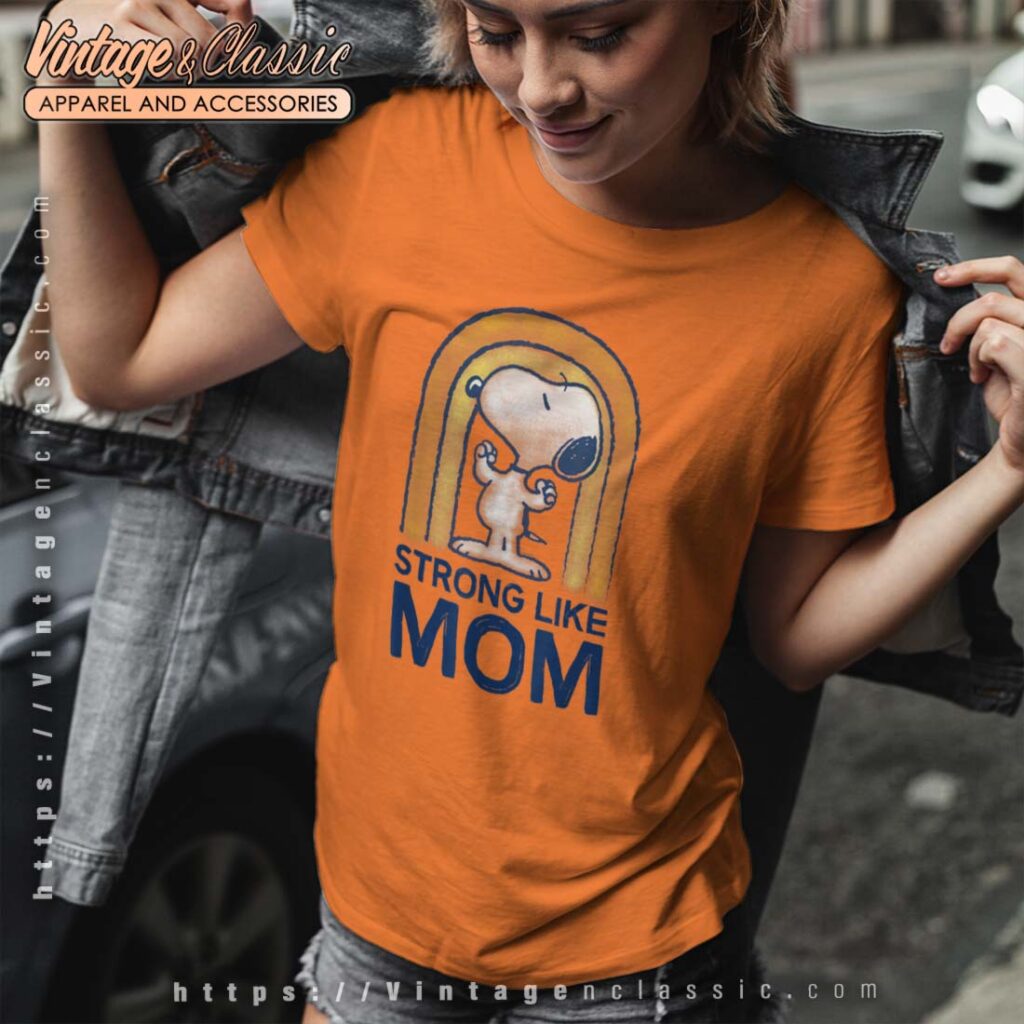 This Peanuts Snoopy “Strong Like Mom” T-shirt is a heartwarming and nostalgic gift for Mother’s Day. It features the beloved Peanuts character Snoopy, known for his iconic red doghouse and imaginative adventures. The design celebrates the special bond between mothers and their children, highlighting the strength and love that defines their relationship. This shirt is a perfect way to show appreciation for the amazing moms in our lives.