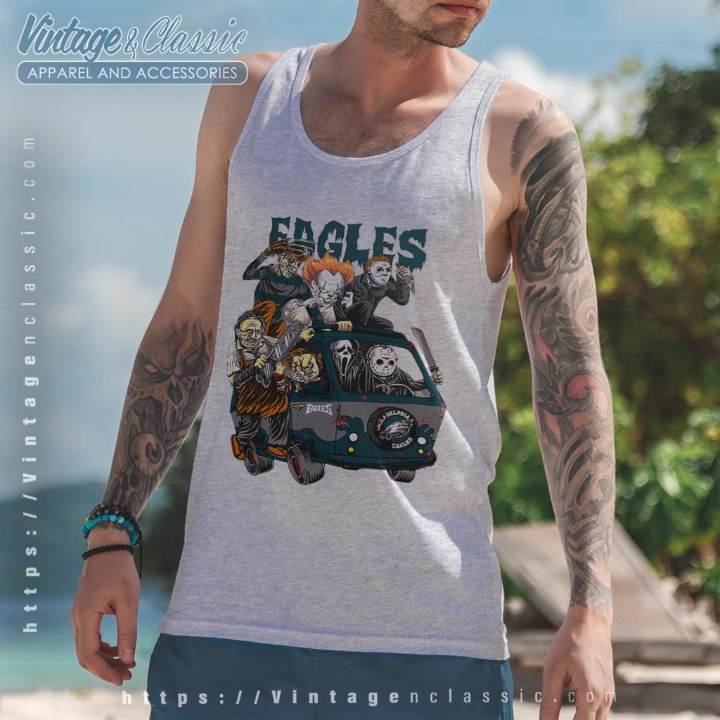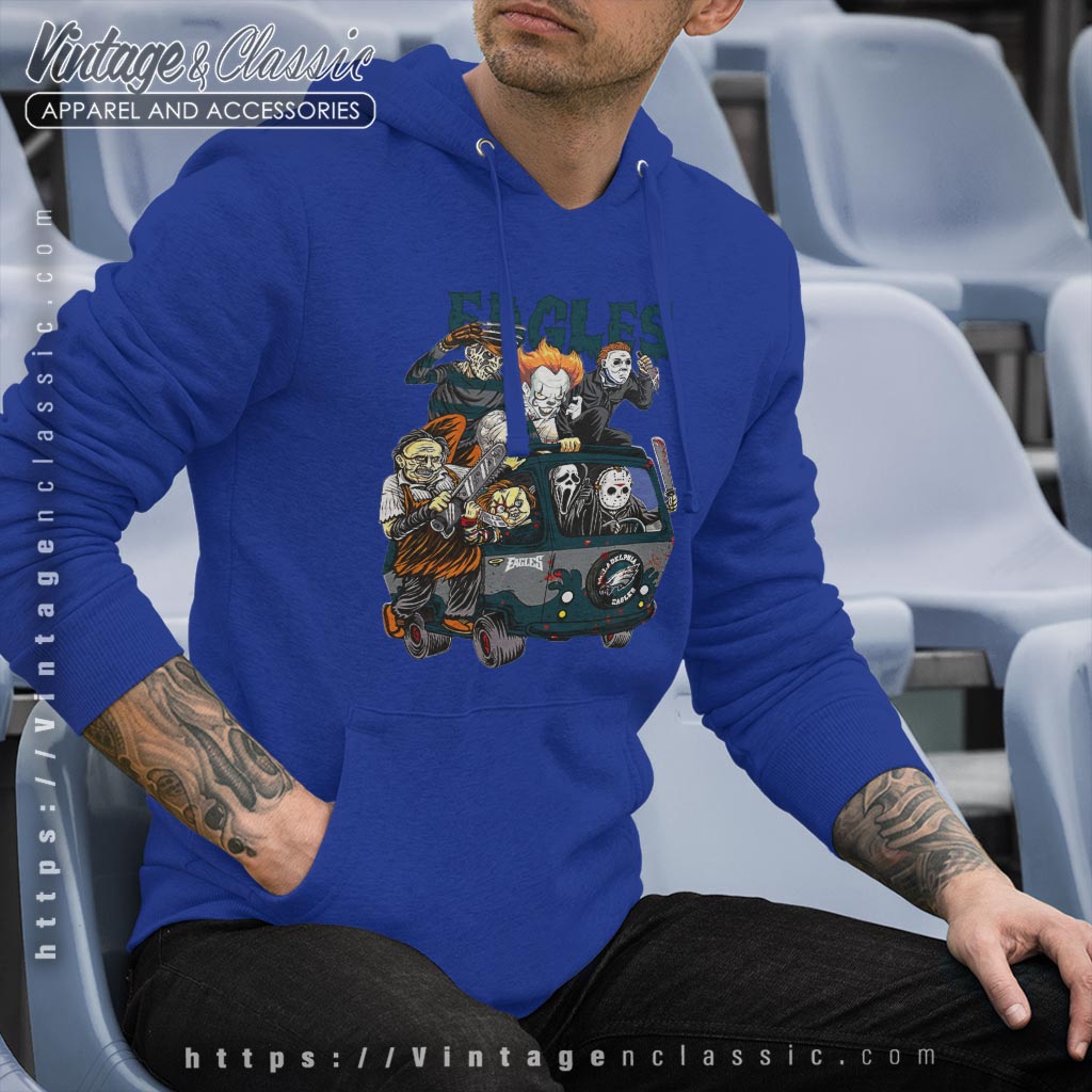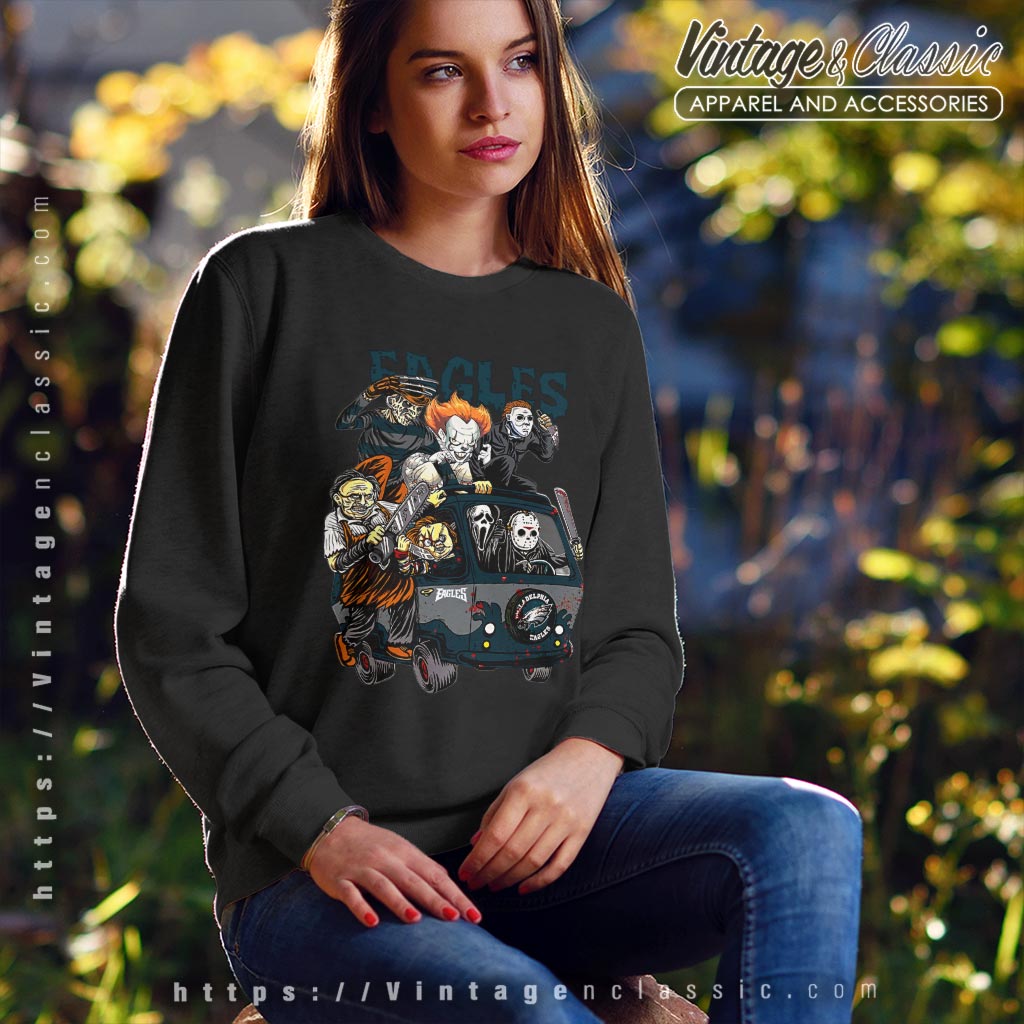 related keywords: Philadelphia Eagles horror characters Halloween shirt, Eagles Pennywise Freddy Jason tee, horror villains Philadelphia Eagles fan shirt, Halloween Eagles slasher van design