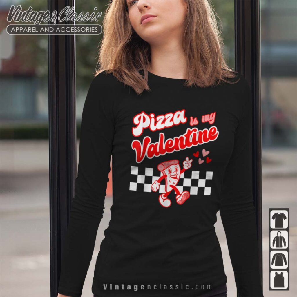This shirt is a fun and playful way to celebrate Valentine’s Day! The design features a classic checkerboard pattern with a pizza slice in the center. It’s a unique and quirky gift for pizza lovers and those who enjoy a touch of whimsy on Valentine’s Day.