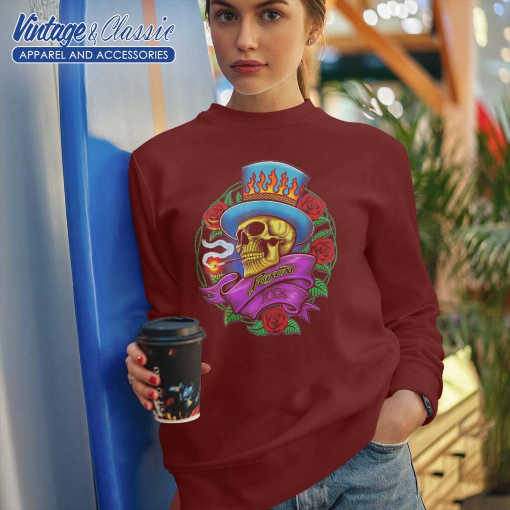 The “Poison Lit Shirt” is a captivating and eye-catching piece of apparel that embodies a rebellious spirit. This shirt is a statement piece, drawing inspiration from the iconic “Poison” album by Alice Cooper. The design features a vibrant and bold graphic of a skull with a “Poison” inscription, making it a perfect choice for fans of the legendary rock musician and his iconic imagery.