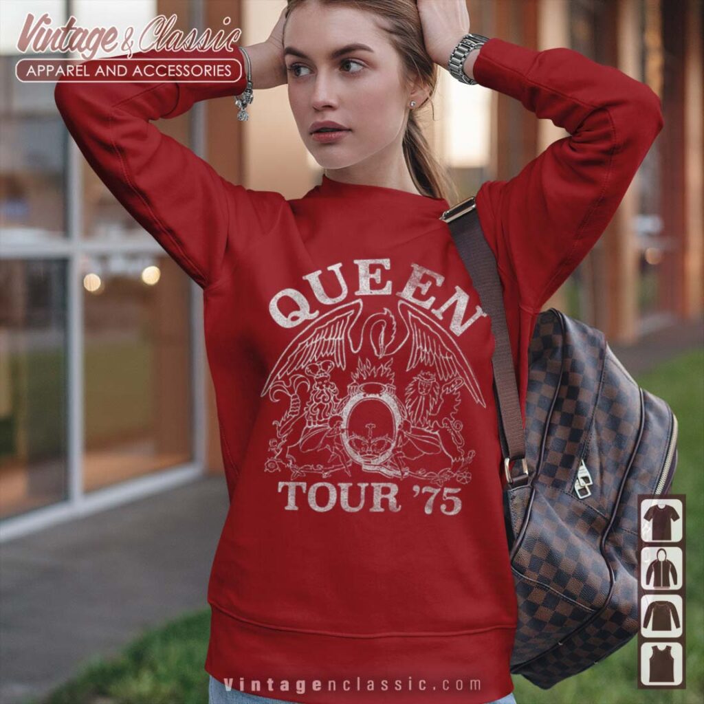 The Queen Tour 75 Crest Logo Shirt is a vintage-inspired piece of clothing that celebrates the iconic band Queen. This shirt features a unique crest design, a nod to the band’s legendary status and their enduring legacy. It’s a must-have for any Queen fan, offering a stylish and nostalgic way to show off their love for the band.