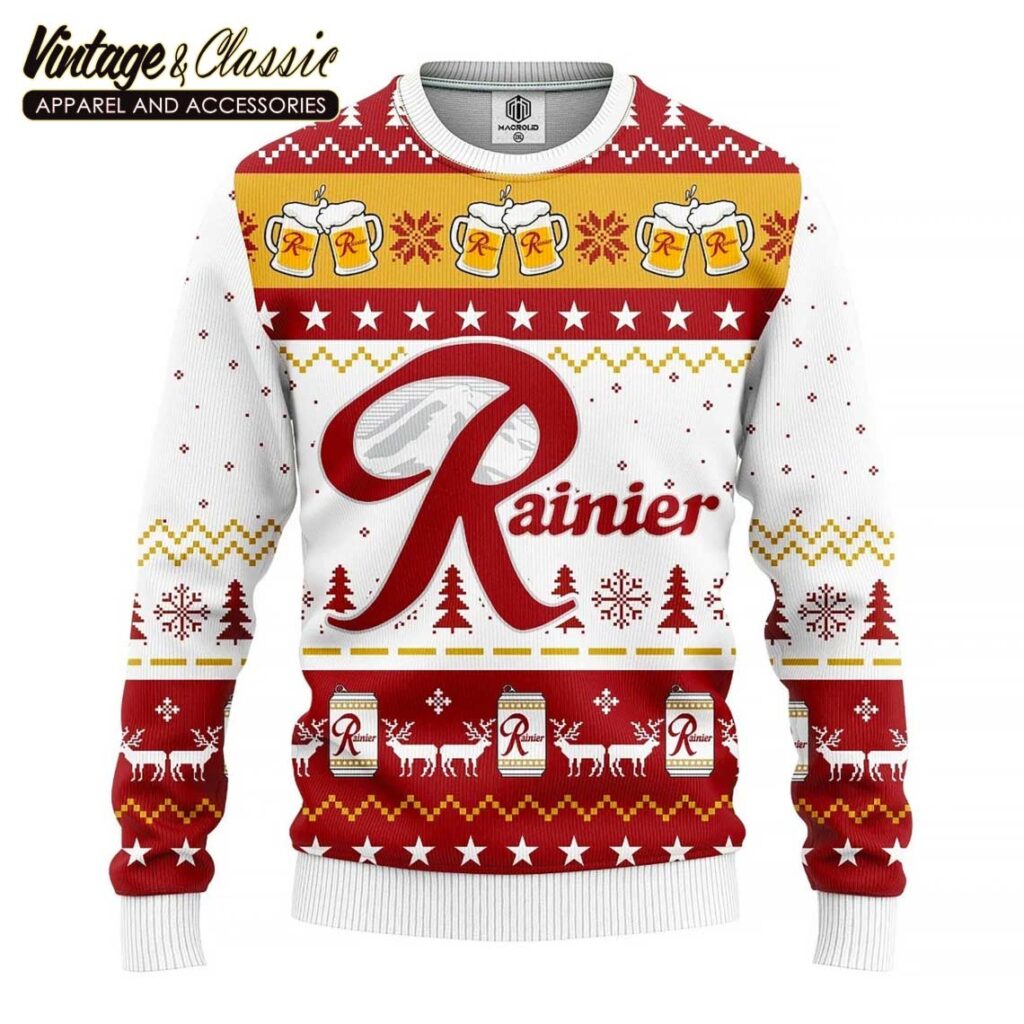**Get ready to jingle all the way with this unique and festive Rainier Beer Ugly Christmas Sweater!**