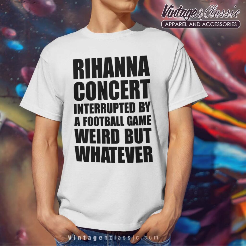 Rihanna’s concert was a memorable one, but things took an unexpected turn when a football game interrupted the performance. This unique shirt captures the spirit of that moment, with its playful and ironic message. “Weird but Whatever” perfectly sums up the situation, highlighting the humorous side of a concert being disrupted by a football game. Whether you’re a die-hard Rihanna fan or just love a good story about unexpected events, this shirt is sure to spark conversation and a good laugh.