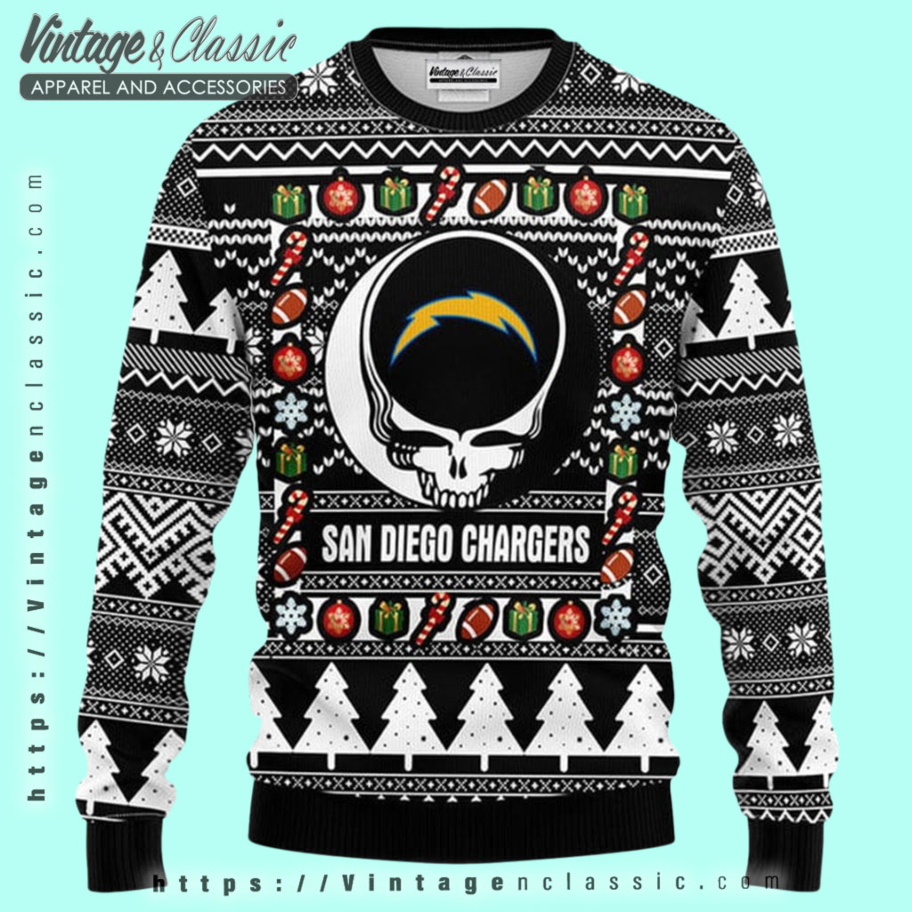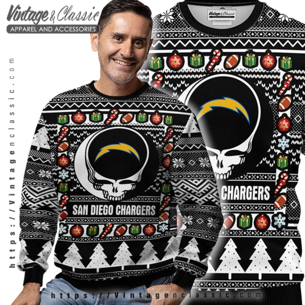 related keywords: San Diego Chargers Grateful Dead sweater, Chargers Steal Your Face ugly sweater, Grateful Dead football Christmas sweater, Chargers lightning bolt Deadhead sweater