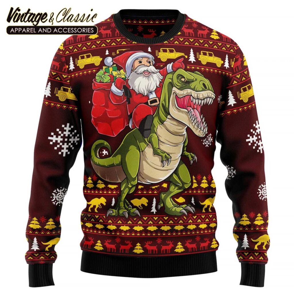 Get ready to spread some festive cheer with the **Santassic Park Christmas Ugly Christmas Sweater!** This hilarious and eye-catching sweater is a must-have for any dinosaur-loving holiday enthusiast.