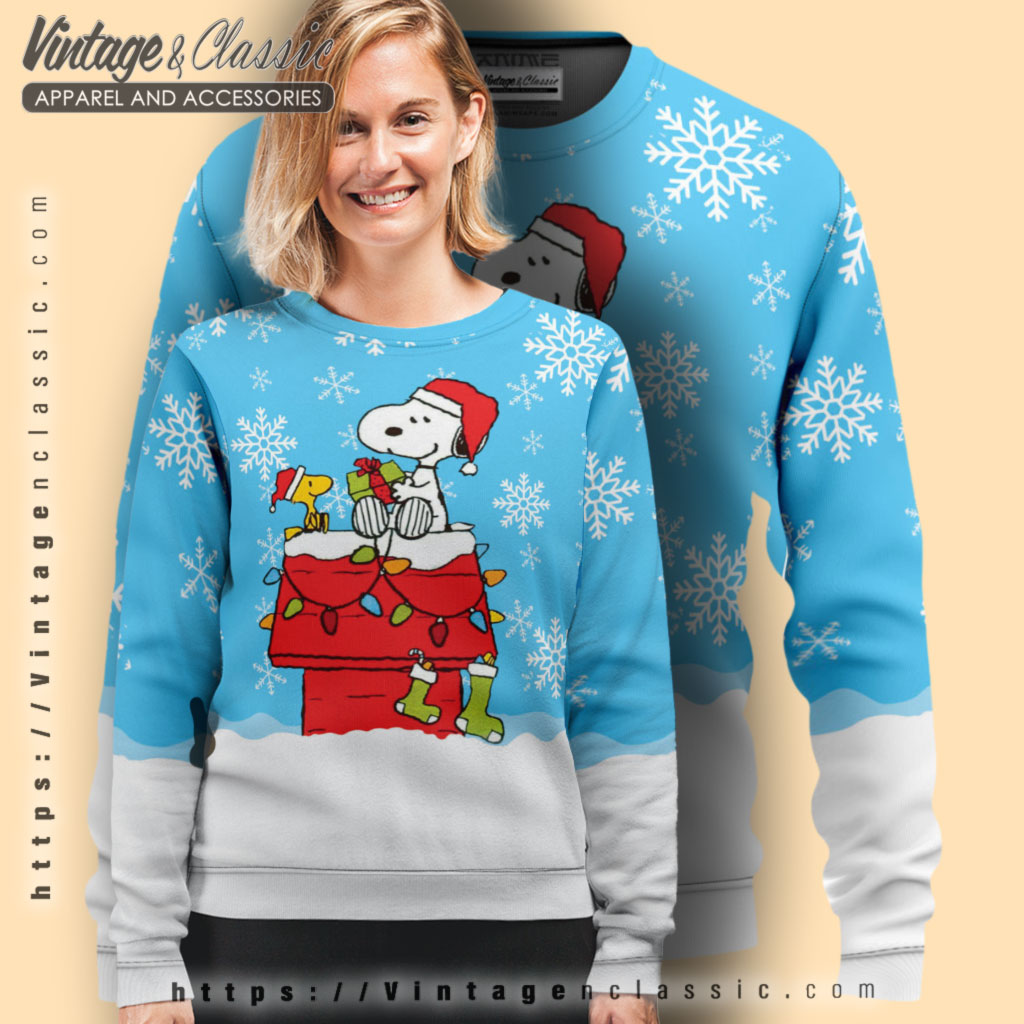 Snoopy, the beloved beagle from the Peanuts comic strip, is synonymous with Christmas cheer. This iconic character is the star of a festive sweater that’s sure to bring a touch of whimsy to your holiday gatherings.