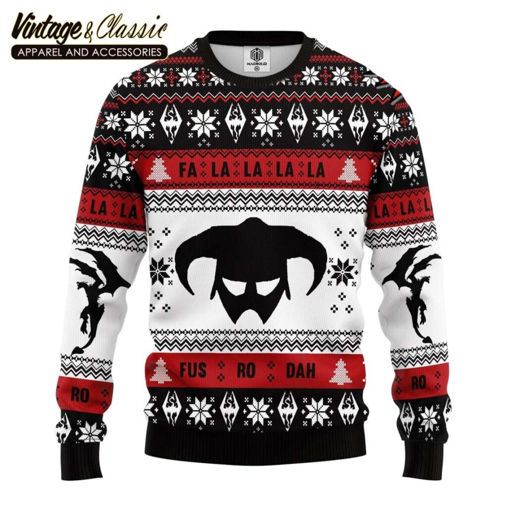 This is a fun and festive take on a classic sweater! The “The Elder Scrolls Ugly Christmas Sweater” is a unique and playful way to celebrate the holidays. The design features the iconic “Fa La La La Xmas” phrase, instantly recognizable to fans of the beloved video game franchise.