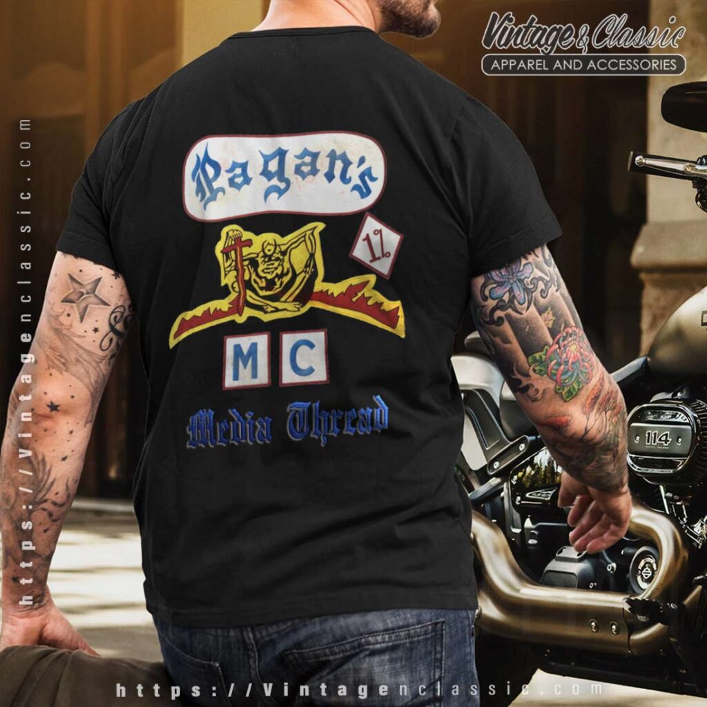 The Pagans MC Media Thread Shirt is a stylish and unique piece of apparel for fans of the Pagans MC motorcycle club. This shirt features a vintage-inspired design that pays homage to the iconic Pagans MC and their rich history. The design is sure to turn heads and spark conversations among fellow motorcycle enthusiasts.