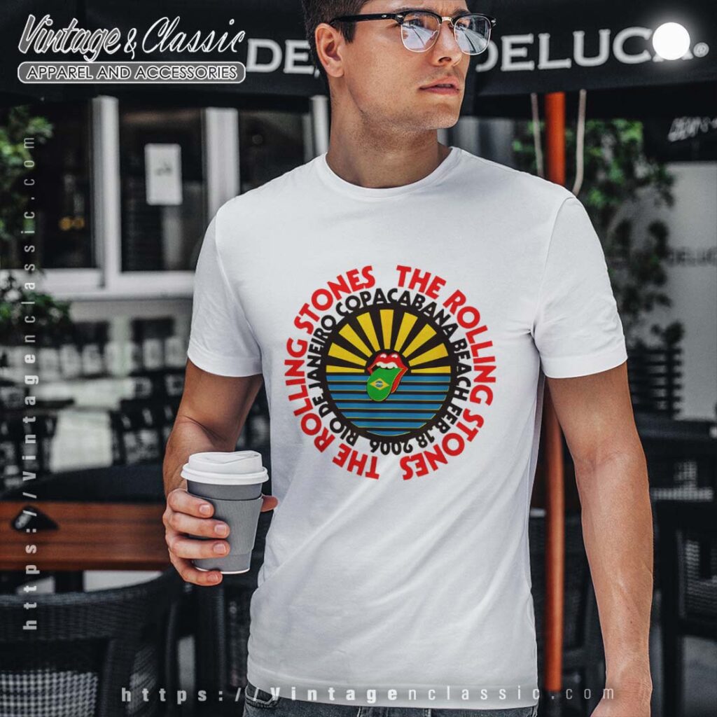 The Rolling Stones’ “Copacabana Beach” shirt is a vintage piece of rock and roll history. This iconic design, featuring the band’s name and a vibrant image of Copacabana Beach, is a sought-after item for fans of The Rolling Stones and vintage fashion enthusiasts alike.
